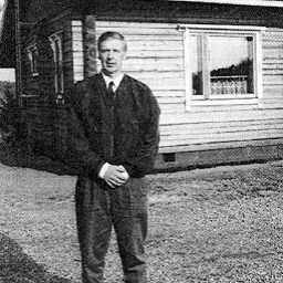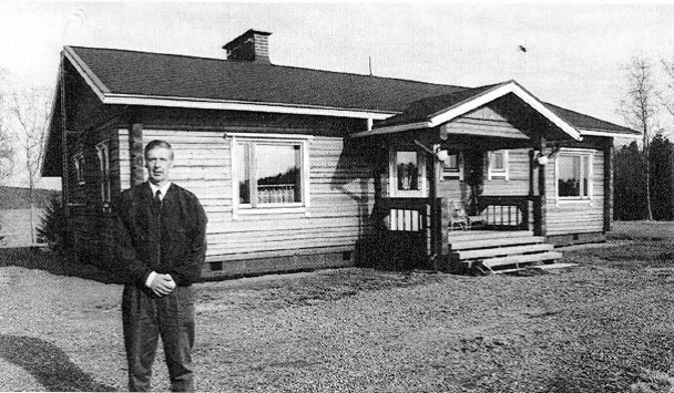 Mikko Joutsiniemi uuden "pirttinsä" pihassa 1998 Keulaniemessä Roineen rannalla