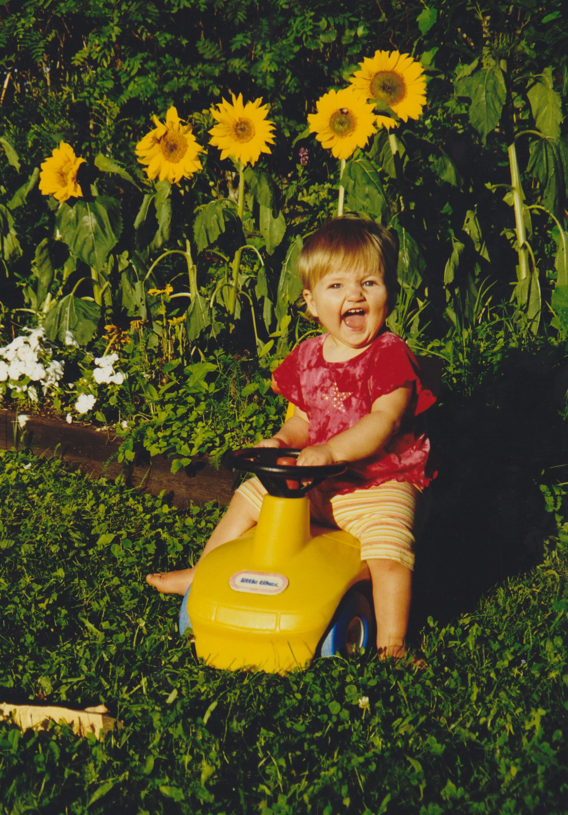 Anna-Maya autoilee kesämökillä Lammilla, alle 11 kk iässä, heinäkuussa 2002