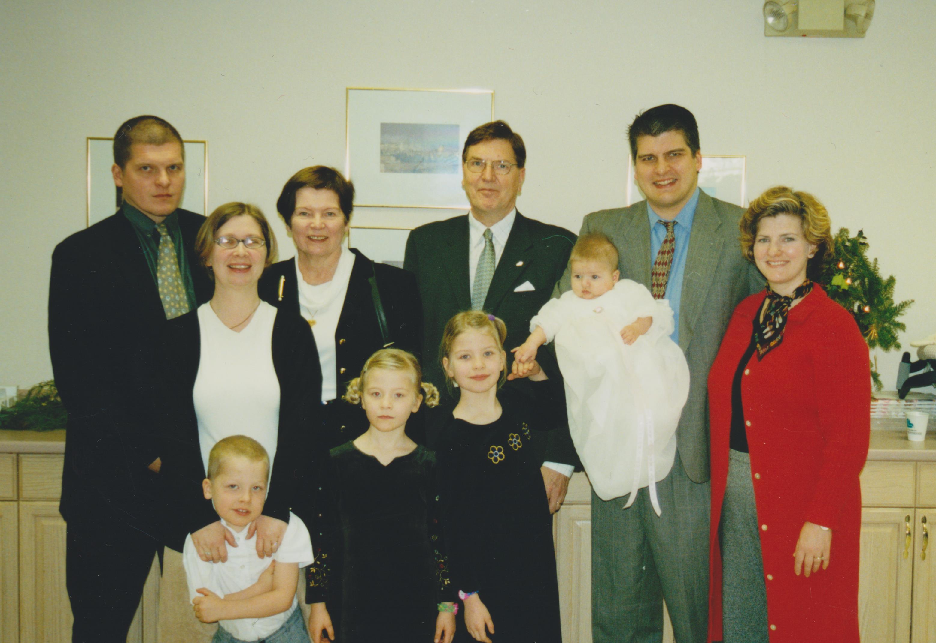 Anna-Mayan ristiäisissä New Jerseyssä USA:ssa 30.12.2001 lähisuku. Vas: Jarkko, Heidi, Tommi, Marja, Erika, Annika, Kari, Anna-Maya, Jouko ja Kim